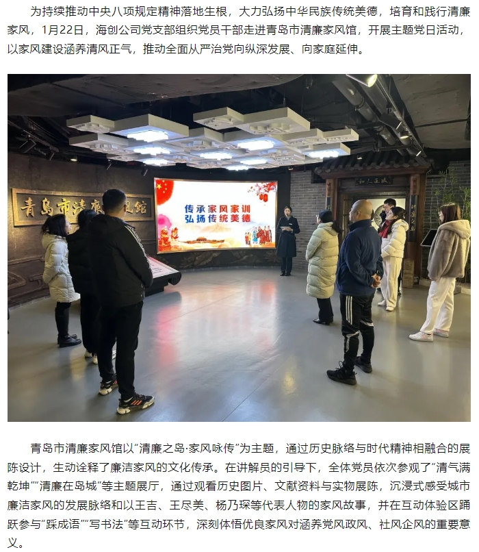 传承优良家风 汲取清廉力量——海创公司党支部组织参观青岛市清廉家风馆